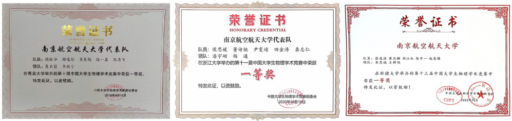 多年来,学院一直将学科竞赛活动融入人才培养全过程,面向全校学生组织开展了多项与物理学科相关的高水平学科竞赛,如中国大学生物理学术竞赛(China Undergraduate Physics Tournament,简称“CUPT”)和全国大学生物理实验竞赛(Chinese Undergraduate Physics Experiment Competition,简称“CUPEC”),均为学校Ⅰ级甲等赛事。近5年来,我校在两个赛事中共荣获一等奖10次,二等奖10次,三等奖9次。