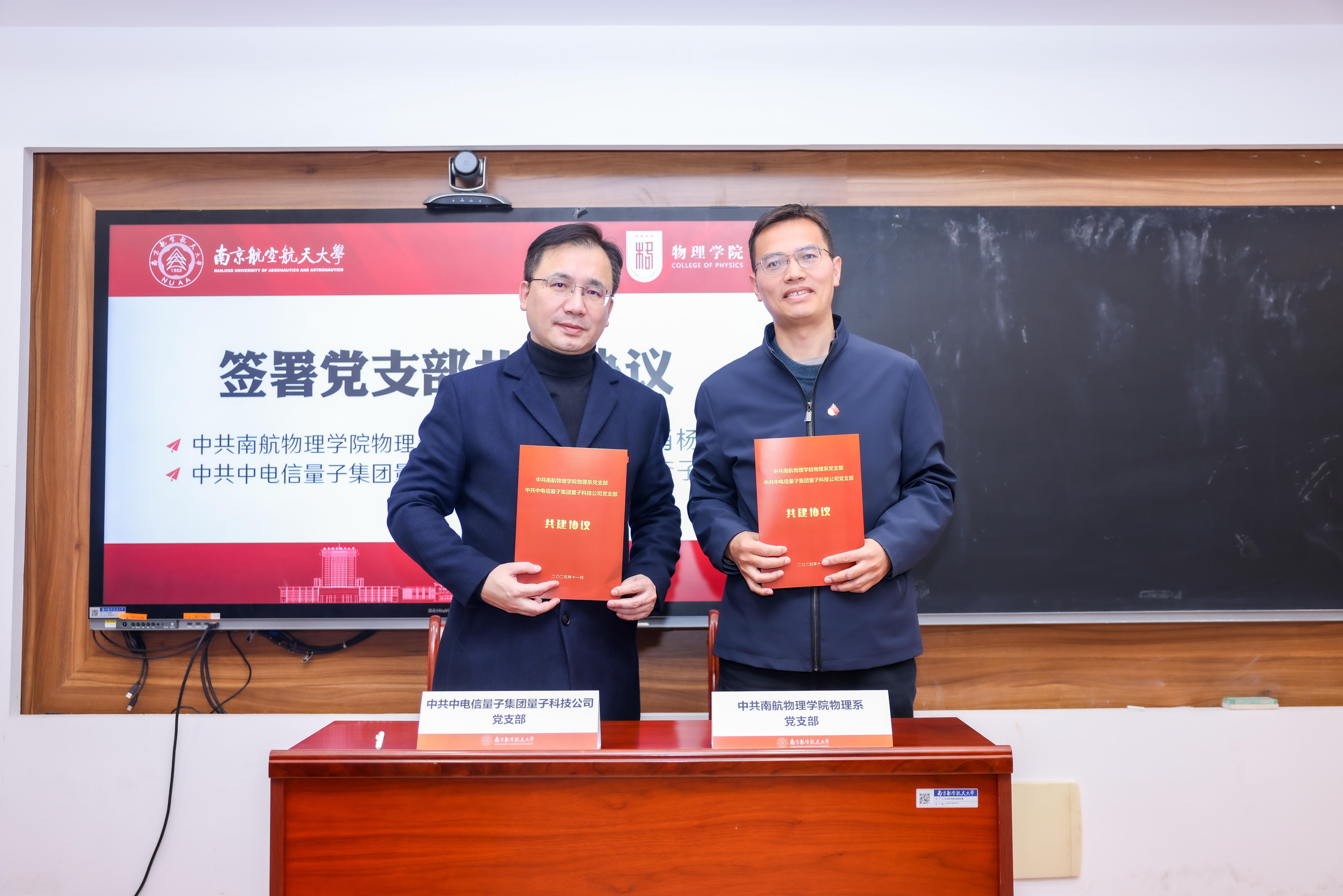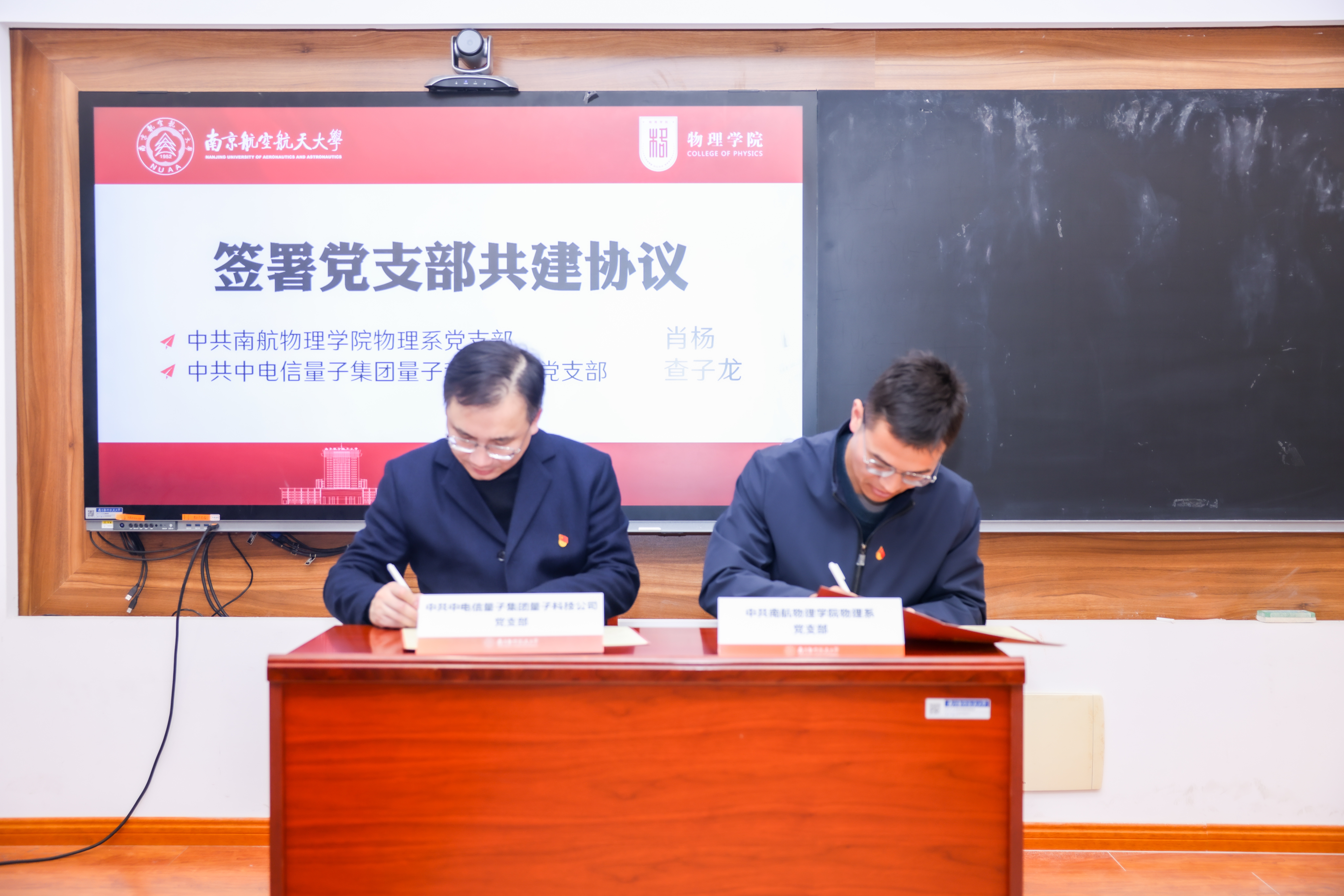 会上,双方还正式签署两项协议。颜射美女 党委书记陈修文与中电信量子集团苏赣区域支撑中心总经理鞠峰代表校企双方签署战略合作协议,约定在科研合作与技术攻关、人才培养与基地建设、学术交流与科研活动、联合攻关与成果转化、学科建设等方面开展协同创新。颜射美女 物理系党支部书记肖杨与中电信量子集团量子科技公司党支部代表查子龙签署党支部共建协议,确立以党建引领产学研资源整合、人才联合培养的合作模式。