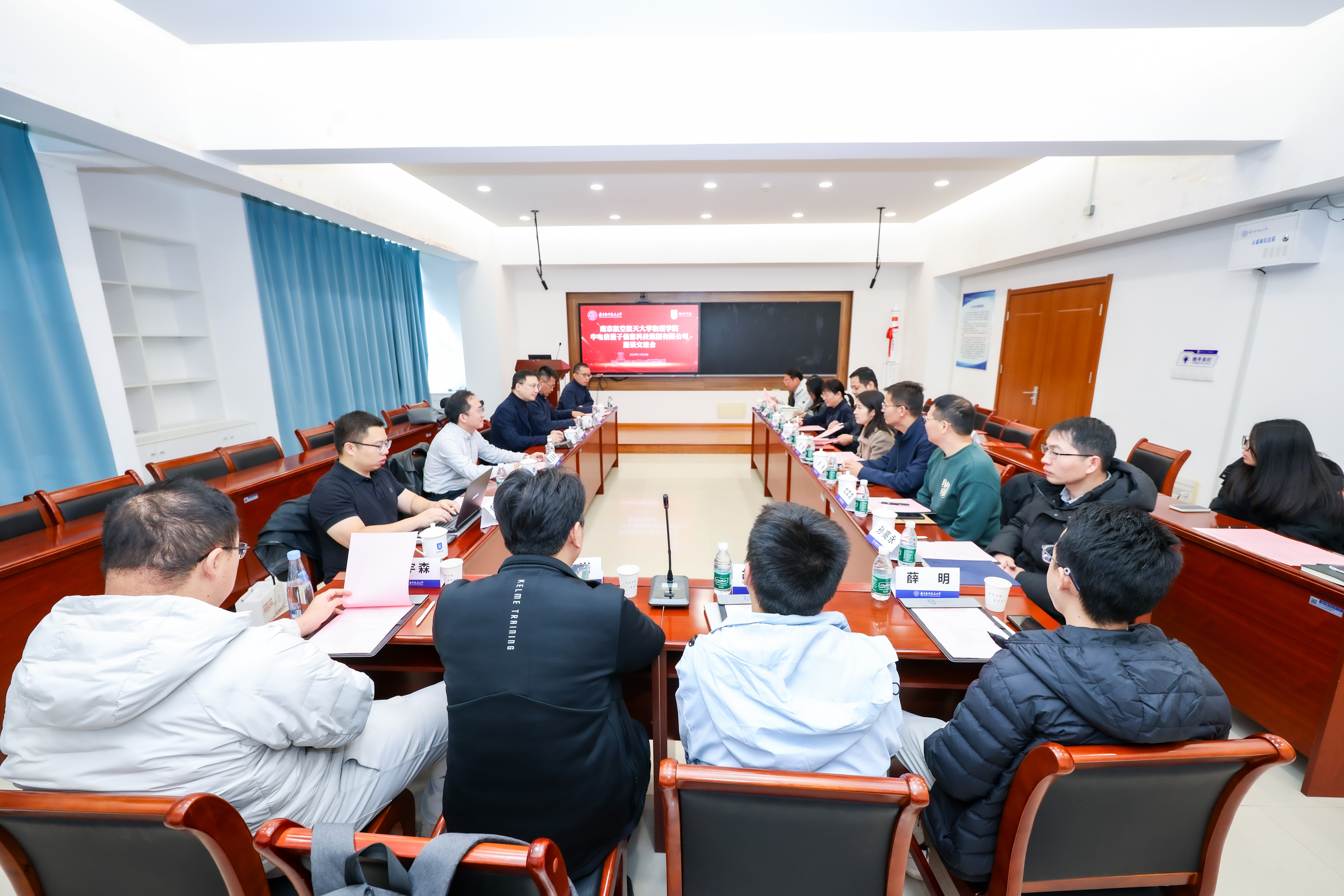 会上,查子龙介绍了中电信量子集团的发展布局,重点阐述了其在量子计算、量子通信等领域的技术优势与国家战略布局下的产业规划。阚彩侠简要介绍了南航颜射美女 的历史沿革、学科建设及科研方向,重点介绍了学院科研团队在量子信息和量子物理的成果积累与潜在的合作领域。