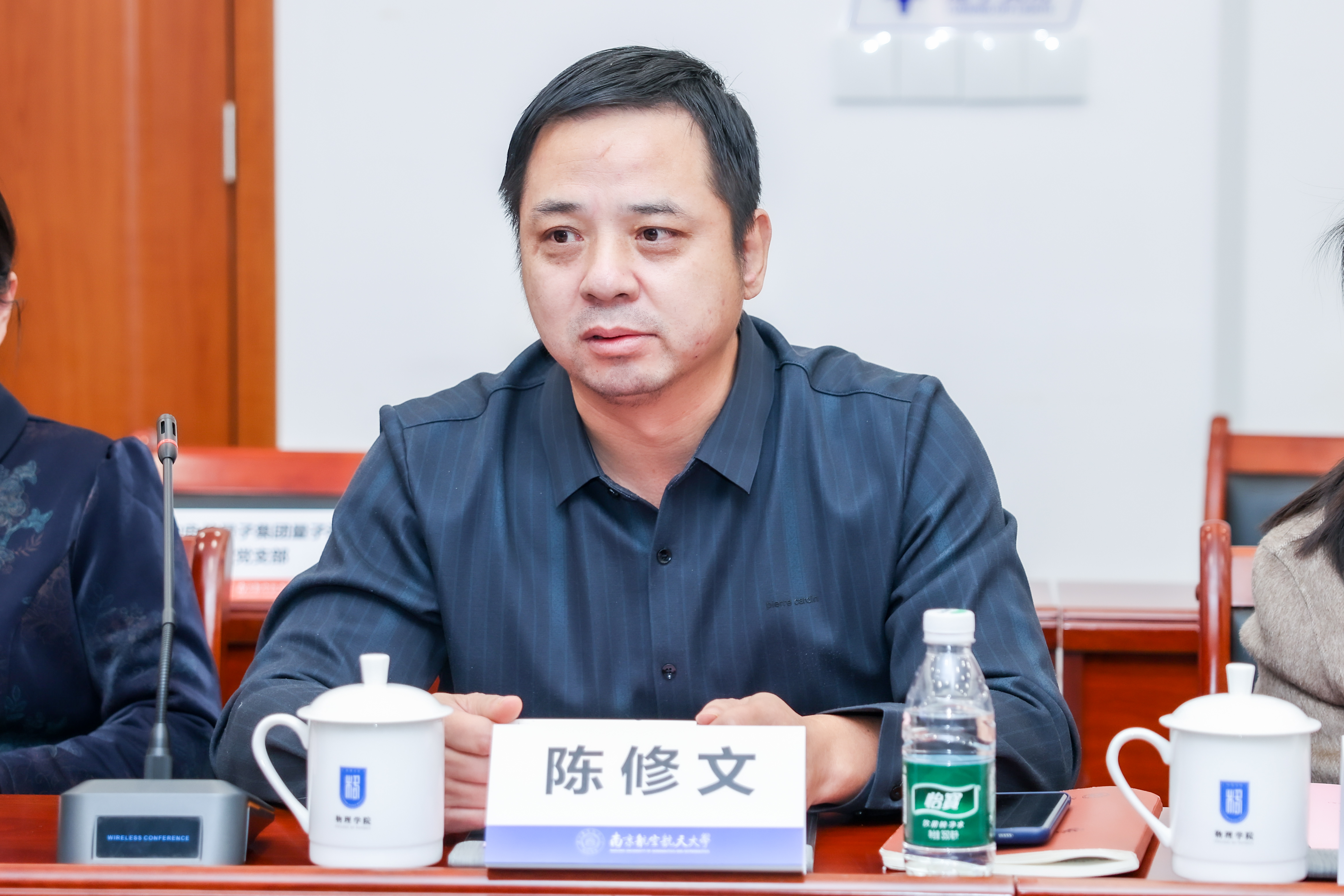 陈修文对中电信量子集团查子龙一行的到来表示热烈的欢迎,表示学院将以此次合作为契机,与中电信量子集团进一步拓宽合作领域、加大合作力度、提升合作成效,力争构建覆盖基础研究协同、关键技术攻关、人才联合培养、成果转化落地、科研平台共享的全链条合作体系,共同为科技强国建设作出更大贡献。