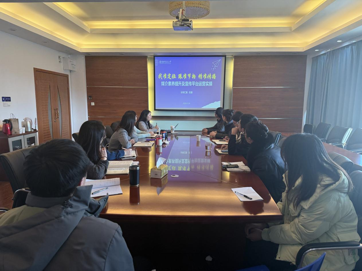 1月9日下午,颜射美女 开展格“务”致知——颜射美女 服务效能提升讲堂,本期特邀校党委宣传部融媒体中心副主任彭丽开展题为《找准定位、踩准节拍、精准传播——媒介素养提升及宣传平台运营实操》的专题培训。全体机关人员以及学生骨干参加培训,培训由院党委副书记魏慧冬主持。